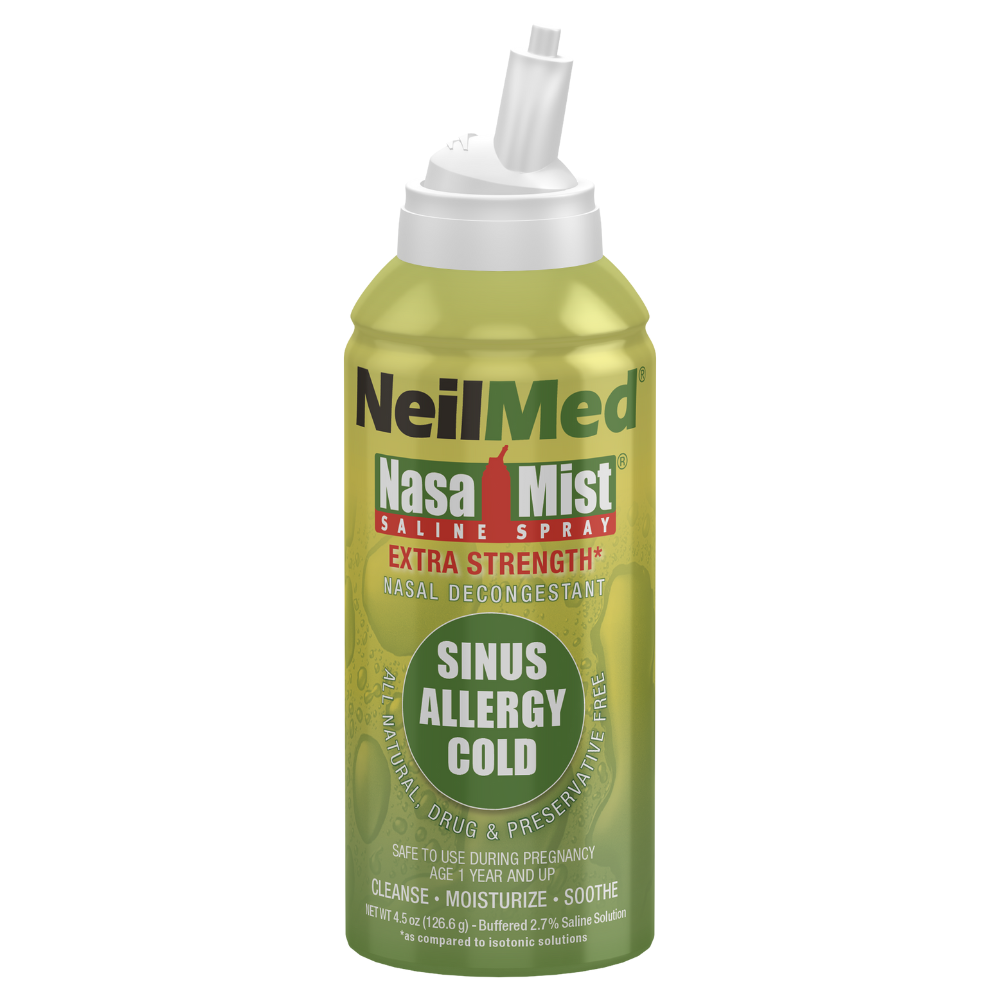 The NeilMed NasaMist Extra Strength Hypertonic Saline Spray (125ml) is a natural, sterile, hypertonic saline spray that provides a fine, gentle mist to moisturize the nasal passages.