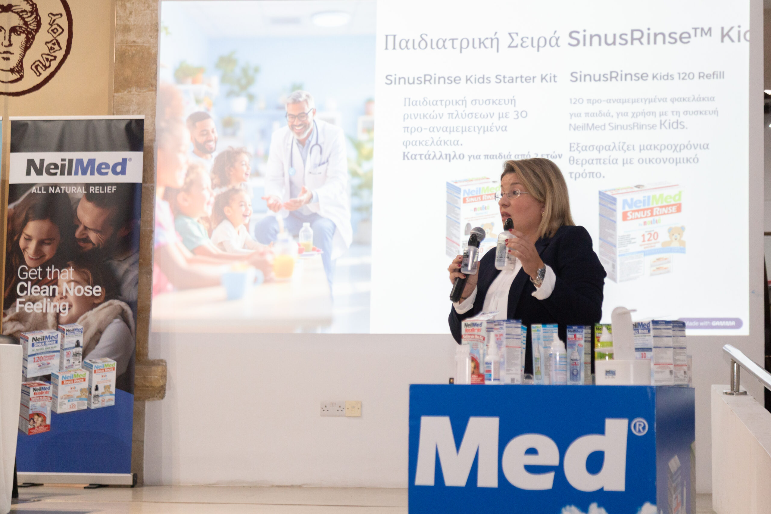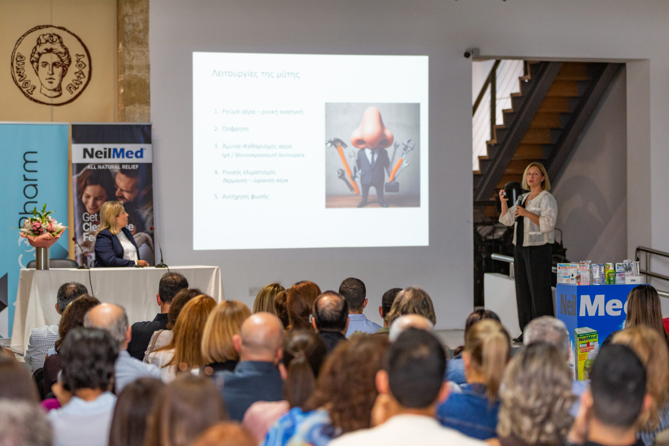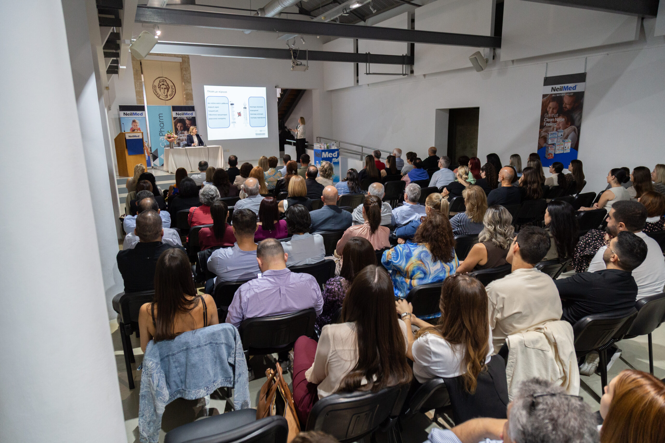 Κεντρική ομιλήτρια ήταν η Δρ. Ευαγγελία Τσακιροπούλου, MSc, PhD, Χειρουργός Ωτορινολαρυγγολόγος, η οποία παρουσίασε τεκμηριωμένα πρωτόκολλα ρινικών πλύσεων και χρήσιμες οδηγίες για την καθοδήγηση ασθενών. Η συνεργάτισά μας Ζωή Κυπριανού από την Getremed ανέδειξε τον ρόλο των προϊόντων NeilMed στην καθημερινή ρινική φροντίδα.