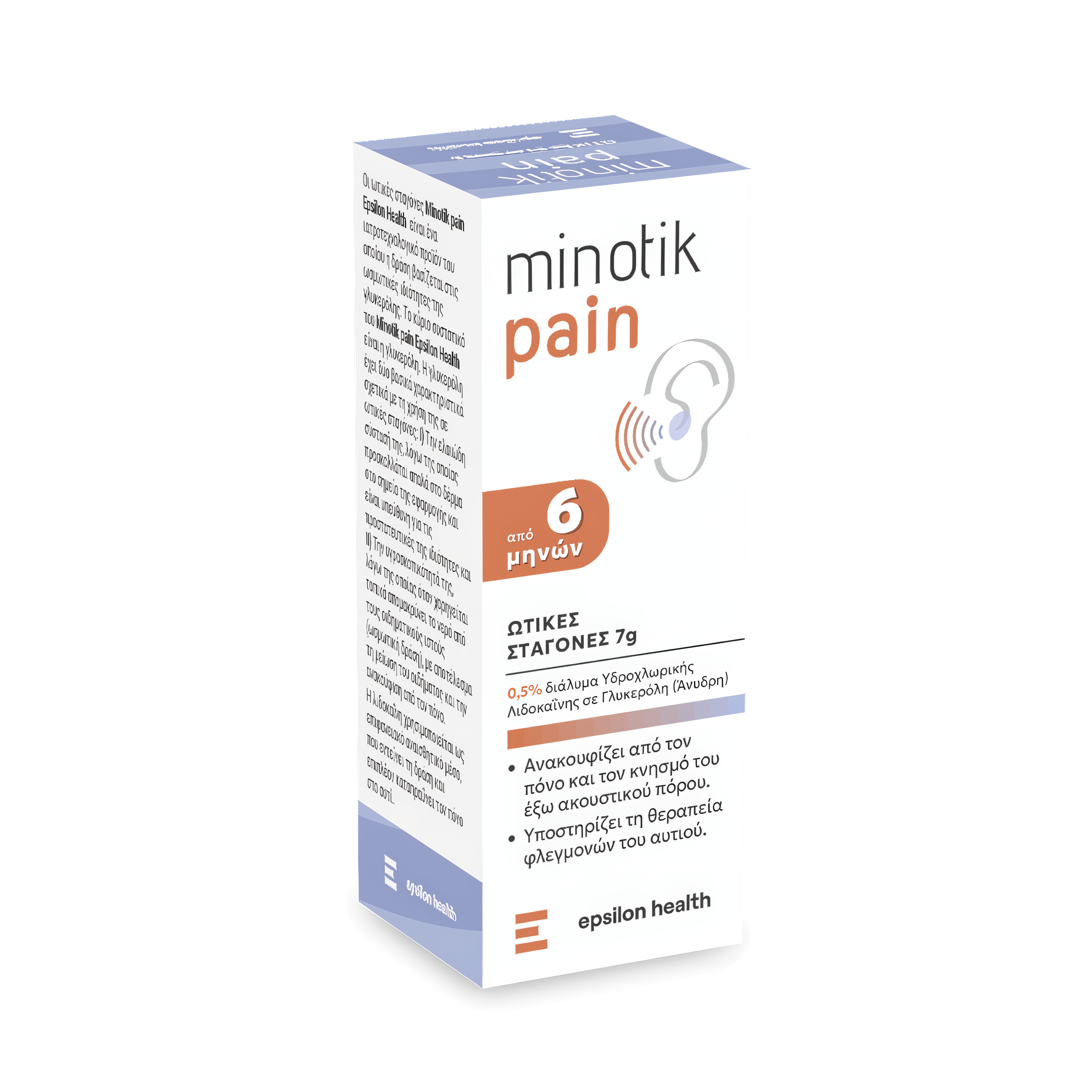 Το Minotik pain είναι ένα ιατροτεχνολογικό προϊόν σε μορφή ωτικών σταγόνων, που προσφέρει άμεση ανακούφιση από τον πόνο και τον κνησμό του έξω ακουστικού πόρου. Η αποτελεσματικότητά του βασίζεται στην ωσμωτική δράση της γλυκερόλης και την αναισθητική δράση της λιδοκαΐνης.